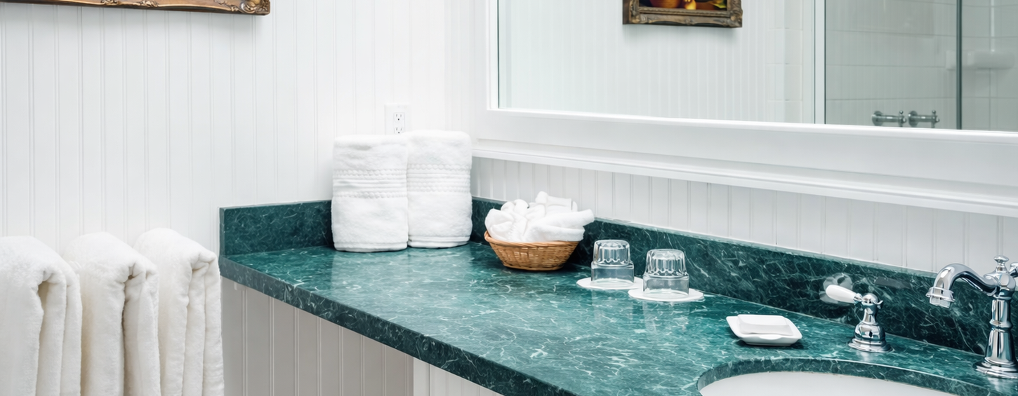Perched on the upper level of The Carriage House, the Hayloft blends historic character with relaxed comfort. French doors open to a private deck overlooking the gardens, offering a peaceful place to unwind. Inside, a king bed, leather loveseat, and wood-burning fireplace create a warm, welcoming retreat, accented by thoughtfully curated antiques. The spacious en-suite bathroom features a tiled, glass-enclosed shower for a refreshing start or end to your day.